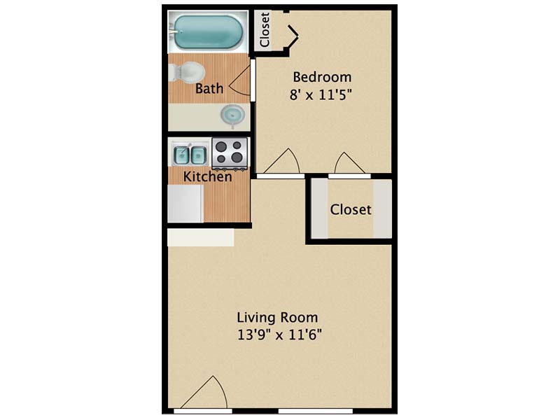 | Studio | 1 Bath | $750 | 312 Sq Ft | S1 | Available Now | |
