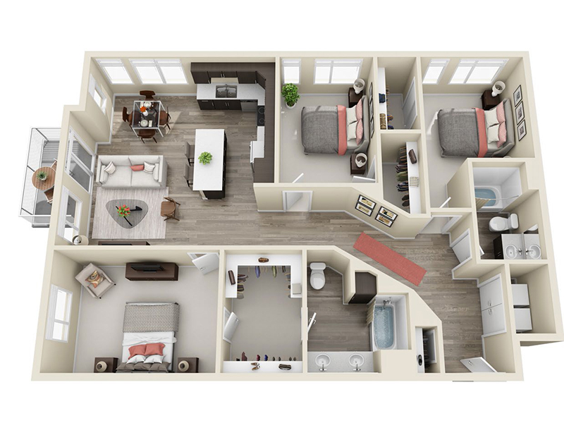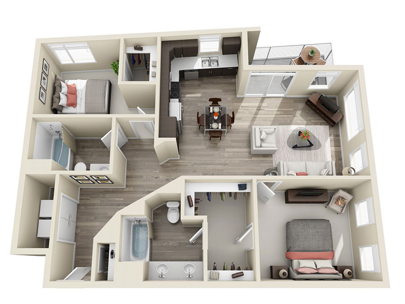 | 1 Bed | 1 Bath | $1,629 | 738 - 804 Sq Ft | A3 | Available Now | |