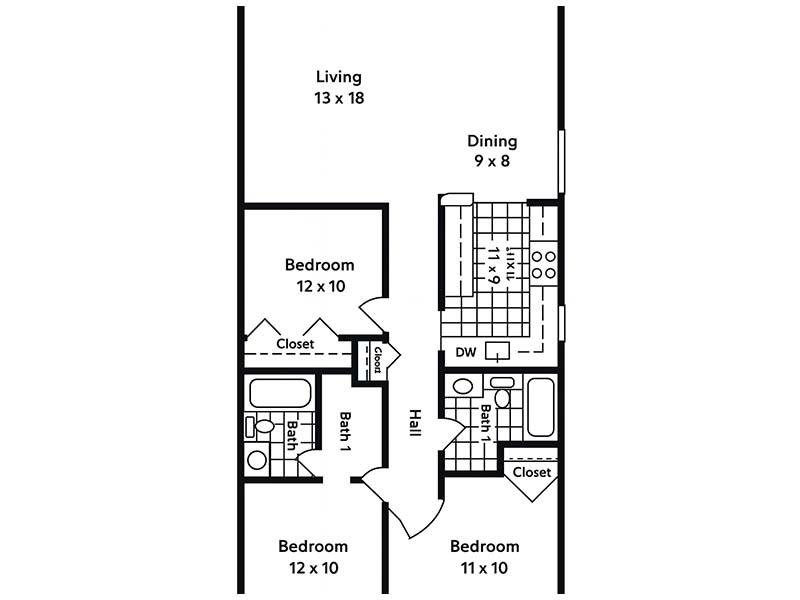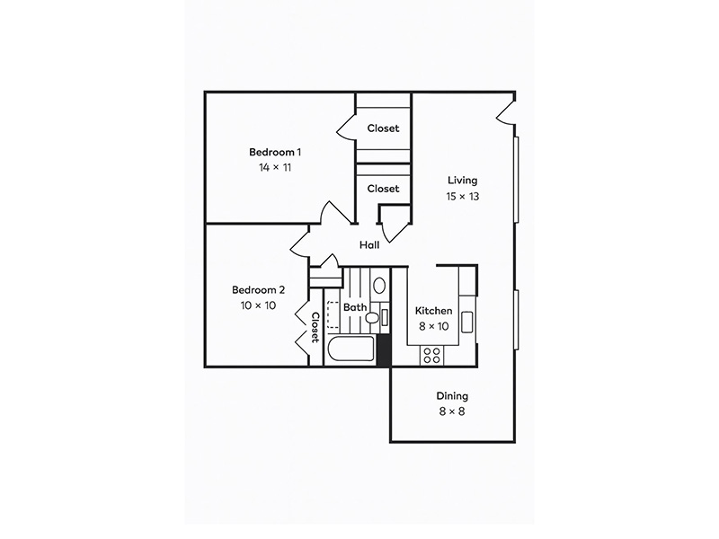 | 2 Bed | 2 Bath | 1,425.00 | 805 Sq Ft | 2x2 E | ||
